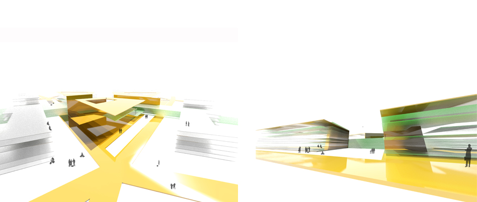 Das Tempelhofer Feld birgt das Potenzial Ausgangspunkt für eine neue Stadtsystematik zu sein – einerseits als Katalysator für Transformationsprozesse im Umfeld und als Startpunkt für neue Entwicklungen. Ziel des Projektes ist es, ein System zu entwickeln, das den städtischen Block neu organisiert und verbindet. Dabei steht zunächst die Idee eines urbanen Netzwerkes, losgelöst vom Tempelhofer Feld, im Vordergrund – als räumlich strukturierendes und funktionales Element. Weitere Ziele sind Nachhaltigkeit mit Blick auf eine co²-neutrale Stadt und Flexibilität im Hinblick auf differenzierte, sich ständig ändernde soziale Bedürfnisse. „polycatalysts“ fasst die Hauptelemente der Informationsgesellschaft – Energie, Information und Infrastruktur – zu einem kollektiven System zusammen, das die Individualität stärkt. Die Dreiecksform wird als effektives System für unter- wie oberirdische Verbindungen gewählt und dient als räumlich strukturierendes Element für die Bebauung. Das übergeordnete Energiekonzept geht perspektivisch von einer künstlichen Photosynthese und der Existenz eines multifunktionalen Materials aus, dessen Oberfläche aus Mikrofasern besteht und das in der Lage ist, den durch Elektrolyse erzeugten Wasserstoff und Sauerstoff zu speichern und zu transportieren. Durch die Kombination der beiden Substanzen steht an jedem Punkt des Netzes elektrische Energie zur Verfügung. Dieses Material ist der Grundbaustein des „polycatalysts“. Es kann als konstruktives Element bei Neubauten eingesetzt werden und als dünne Schicht auf die Gebäudehüllen bestehender Gebäude aufgebracht werden.