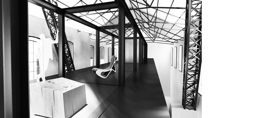 Grundlage der Entwurfsaufgabe war das alte Schachtgebäude der Zeche Gneisenau aus dem Jahr 1885. Es sollte einen Nutzung als Showrom für neue Manufakturen aufnehmen können. Das Entwurfskonzept basiert auf einer völligen Entkernung des Innenraumes. Lediglich der historische Schachtturm und die Stahlbinder des Daches werden belassen. Die äußere Hülle wird in weiten Teilen erhalten und Instand gesetzt. Als neues prägendes Element im Innenraum wird ein Stahlregal eingestellt, welches sich in Materialität und Struktur an die Bestandsträger und den Schachtturm anlehnt. Boden, Wände und Decken werden komplett in Weiss gehalten. Das Stahlregal beinhaltet alle dienenden Funktionen, Erschließungen und Ausstellungsflächen.